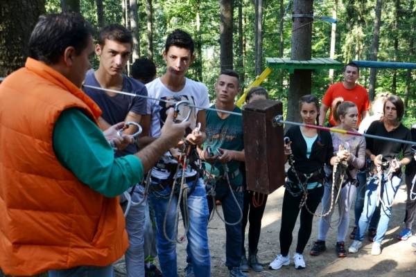 Craiova – 5 Septembrie 2014 | Bursierii programului World Vision ,,Vreau in clasa a noua” din judetul Dolj au petrecut trei zile pline de activitati in mini tabara de vara, organizata anul acesta in statiunea Busteni. Tinerii au mers in drumetii, au pictat icoane pe sticla, au realizat produse handmade si si-au demonstrat curajul participand la exercitiile din parcul de aventura din Busteni. Bagajul de cunostinte si amintirile sunt acum, cu siguranta, mai numeroase!