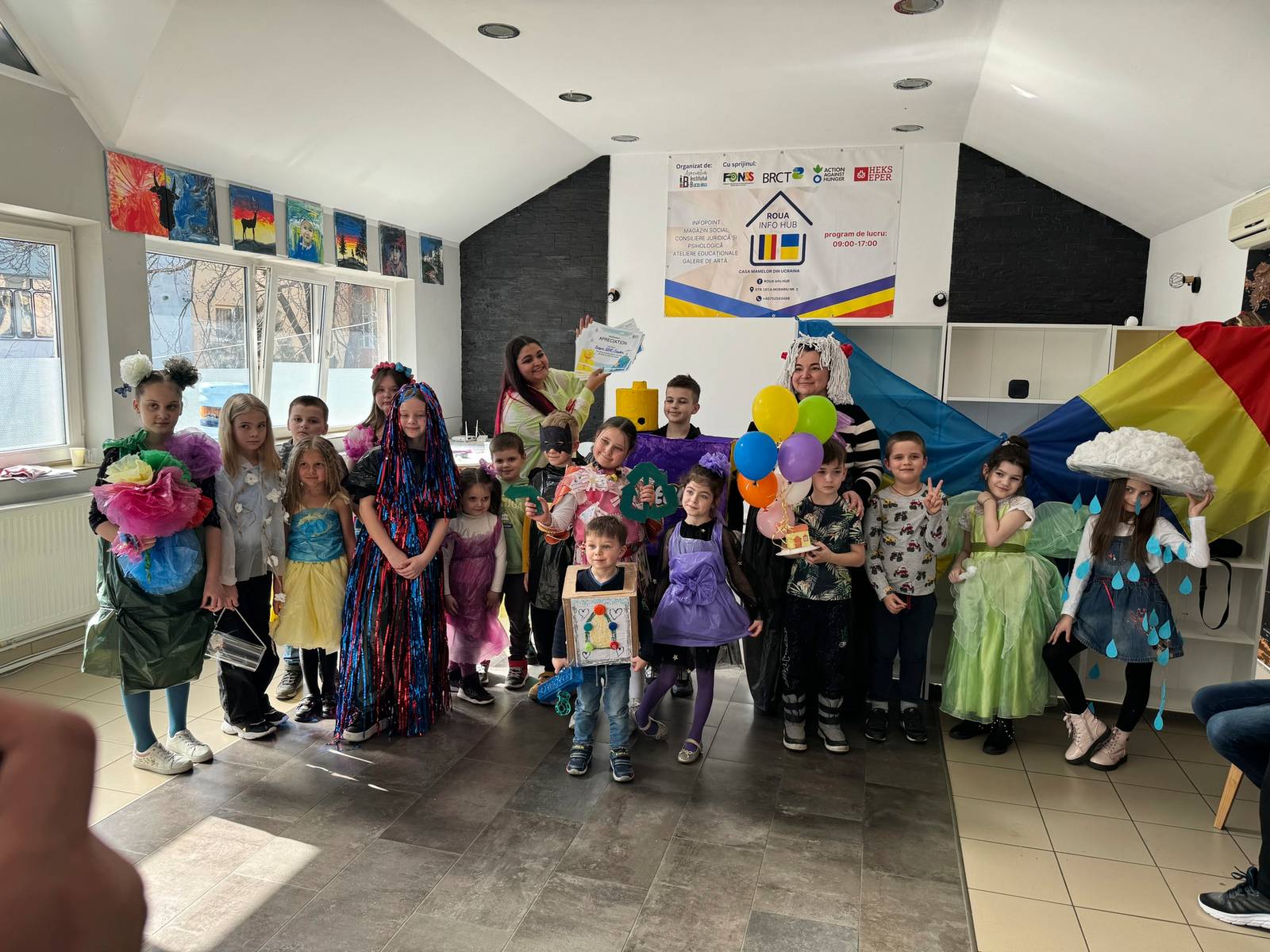 „Orice activitate devine formatoare atunci când pui suflet”, spune Anastasia, una dintre educatoarele Happy Bubble – Suceava în timp ce aranjează unul dintre costumele din materiale reciclabile pe care le-a realizat împreună cu copiii ucraineni şi români. „Chiar şi hârtia creponată leagă prietenii şi e mai tare ca oţelul”, mărturiseşte cu un zâmbet pe faţă. Se vede de departe că acţiunile demarate în centru o împlinesc şi sunt de un real folos şi pentru copiii care roiesc în jurul ei.
